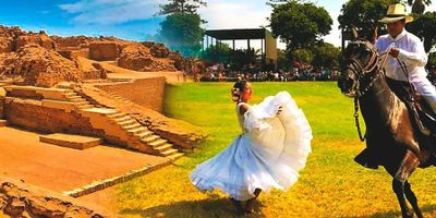 Mística prehispánica y tradición criolla en un solo día: Pachacamac por la mañana y, luego, chalanes y caballos peruanos de paso bailando marinera en una casa hacienda del valle.