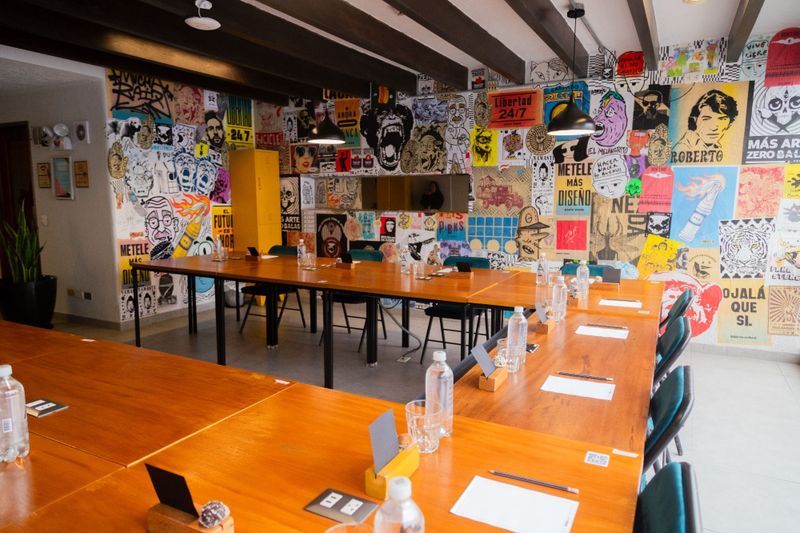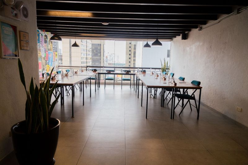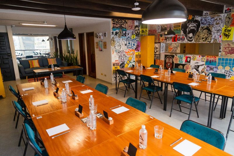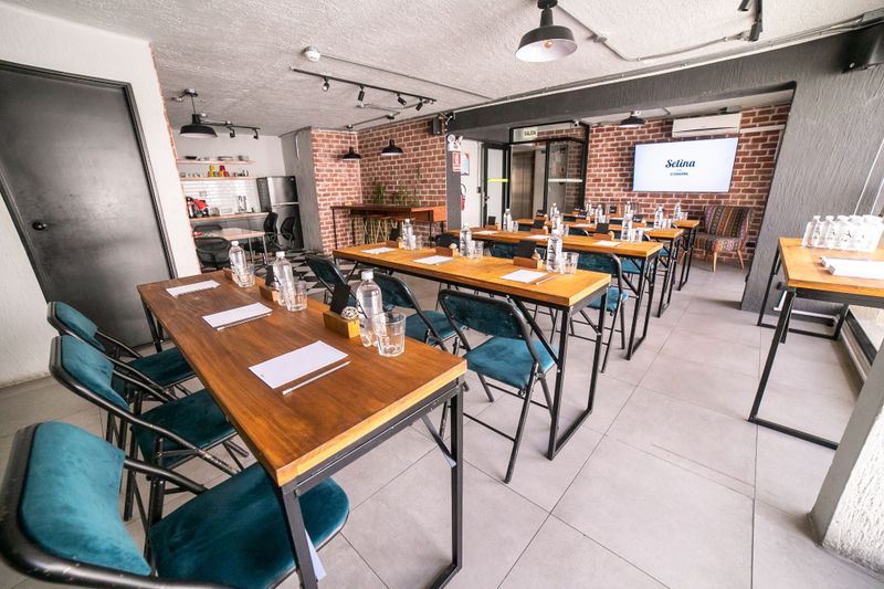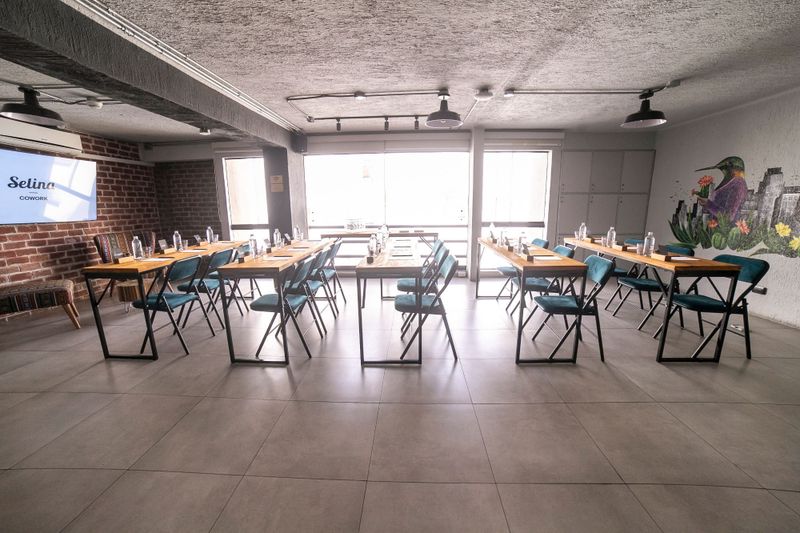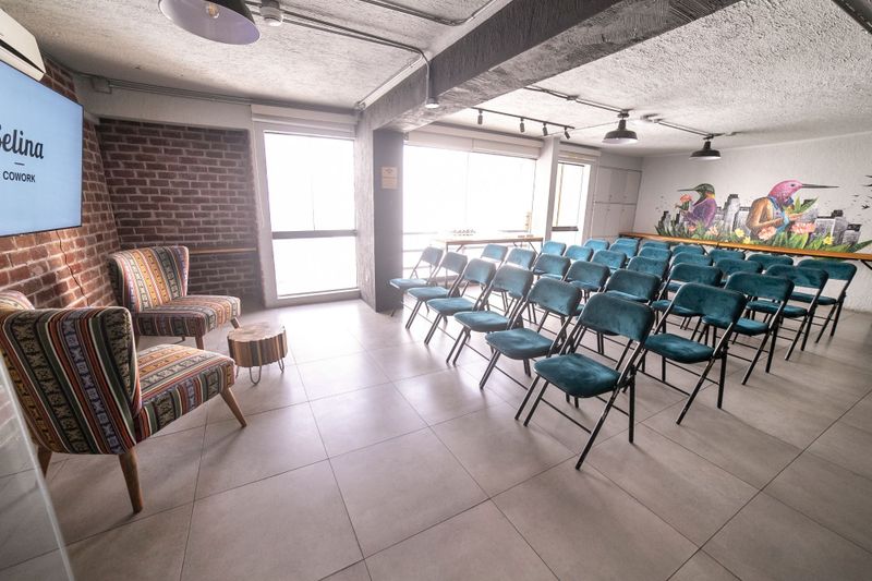Espacio creativo y moderno con capacidad para 40 personas, ideal para talleres y presentaciones dinámicas.