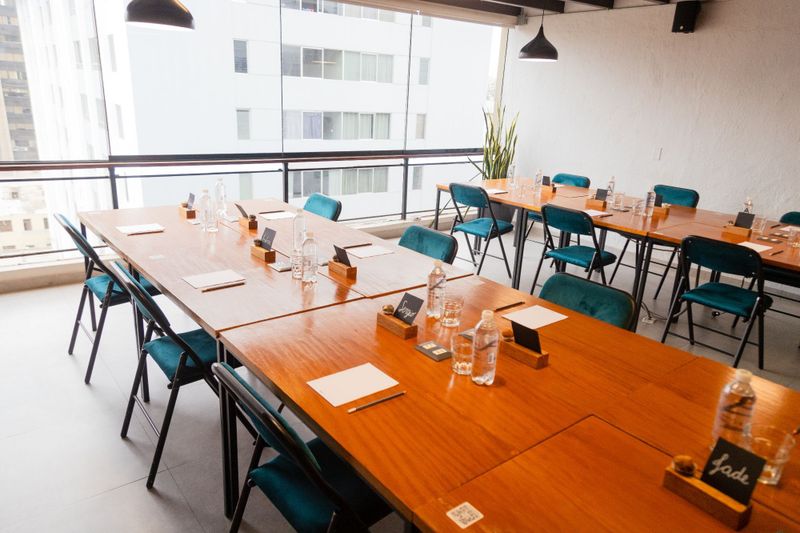 Espacio creativo y moderno con capacidad para 40 personas, ideal para talleres y presentaciones dinámicas.